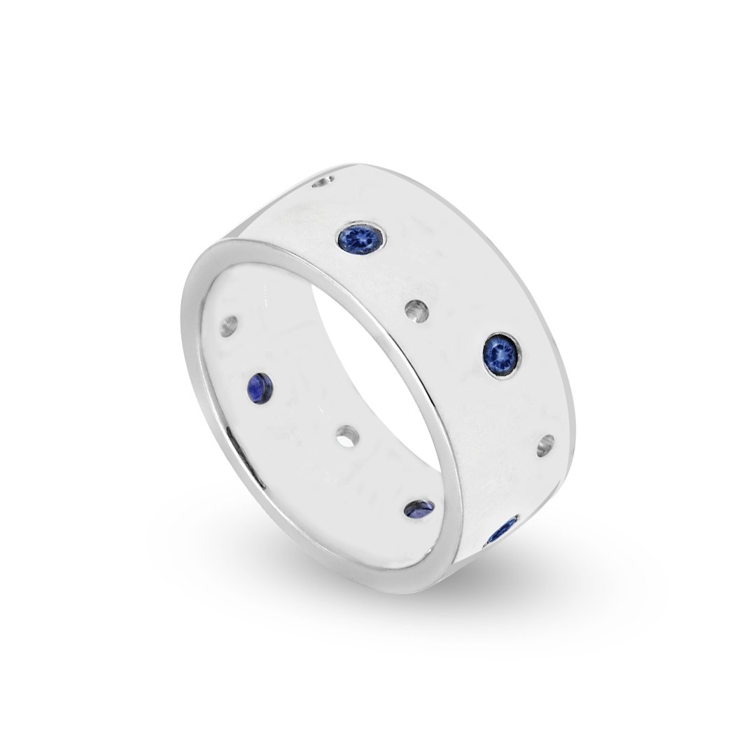 Begermi by Antwerpen artisans polish each band by hand for a flawless finish. The silver’s sheen enhances the cool brilliance of the sapphires, offering depth without distraction. Moreover, the smooth interior surface ensures a comfortable and seamless fit. The 8.86-gram weight provides stability without heaviness. Each stone is carefully set to maintain secure placement and even reflection. Consequently, the ring stands as a piece meant to endure, both in craftsmanship and aesthetic charm. Its beauty deepens through time and continued wear.