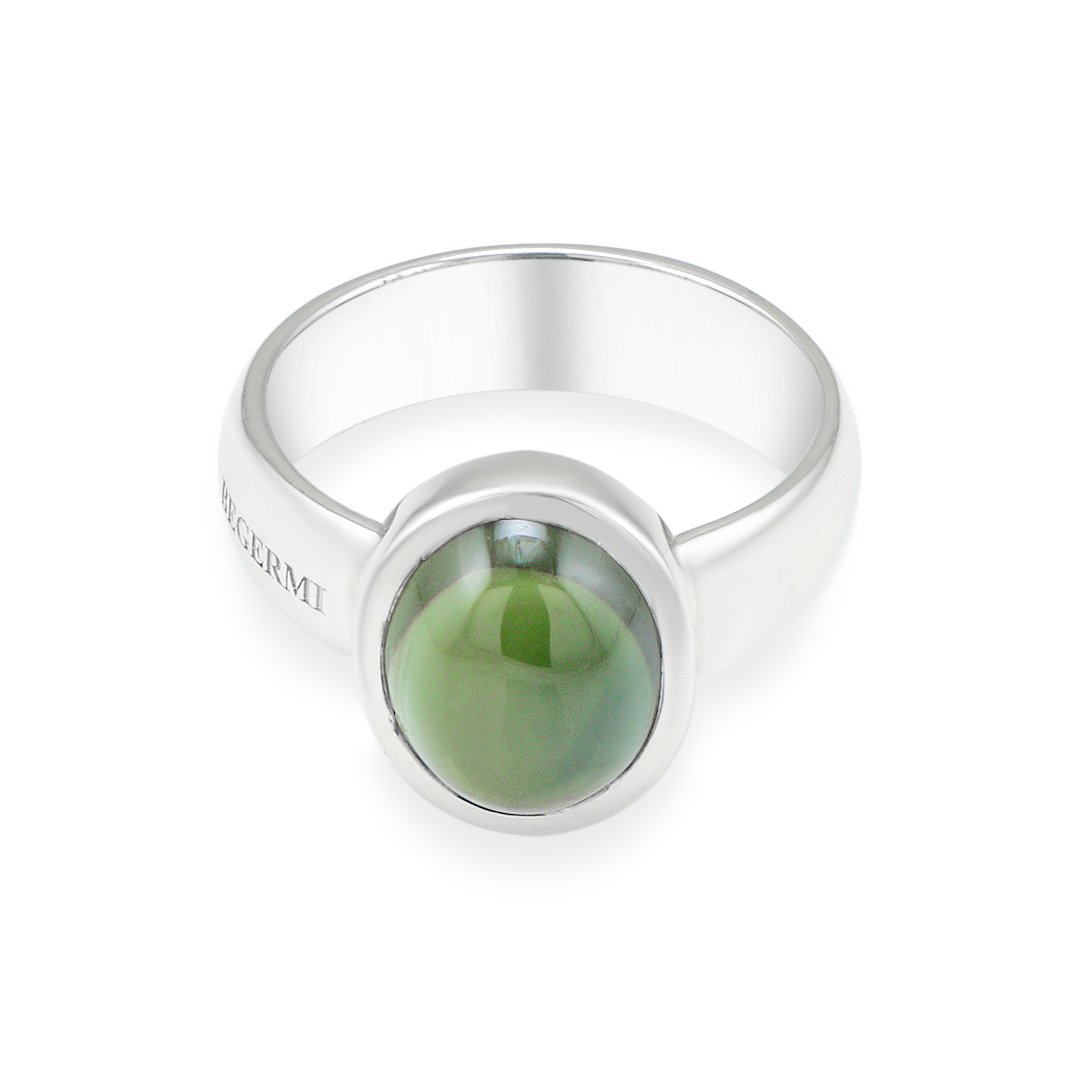 The Silver and Tourmaline S.Begermi Ring captures the essence of timeless artistry with a modern touch. Crafted from 925 sterling silver, it shines with a luminous polish that complements the gemstone’s vivid brilliance. At its heart lies a natural tourmaline, delicately cut to reveal remarkable clarity and depth. The stone’s vibrant hue contrasts beautifully with the cool silver, creating a piece that feels effortlessly refined and balanced in every detail.