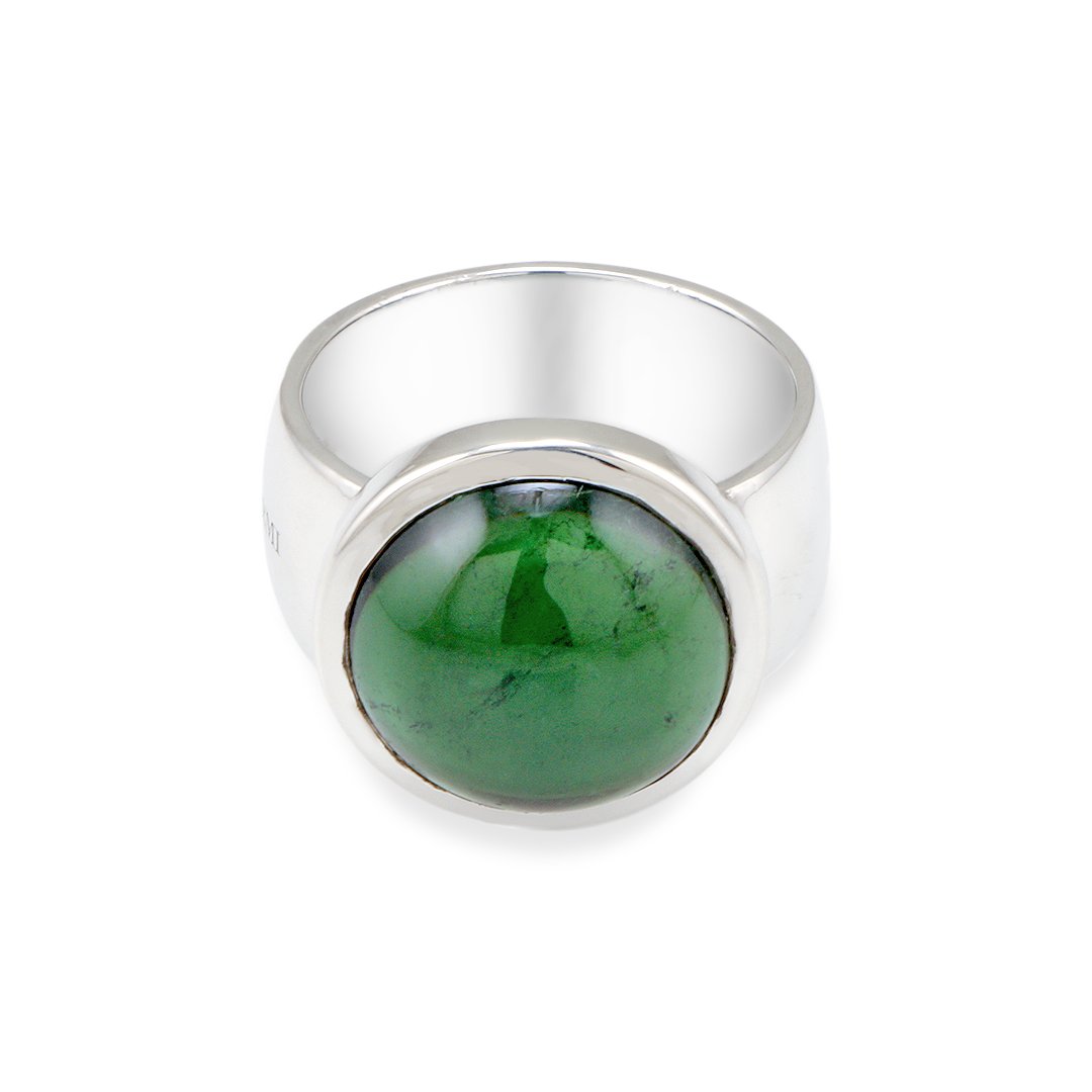 The Silver and Tourmaline S. Begermi Ring radiates strength and sophistication through a striking gemstone centerpiece. Crafted in 925 silver, it weighs 4.88 grams and offers both presence and balance. The natural tourmaline, weighing 11.37 carats, brings deep, captivating color to the design. Its brilliance shifts subtly with movement, adding dimension and mystery. Consequently, this ring becomes a statement of artistry and confidence.