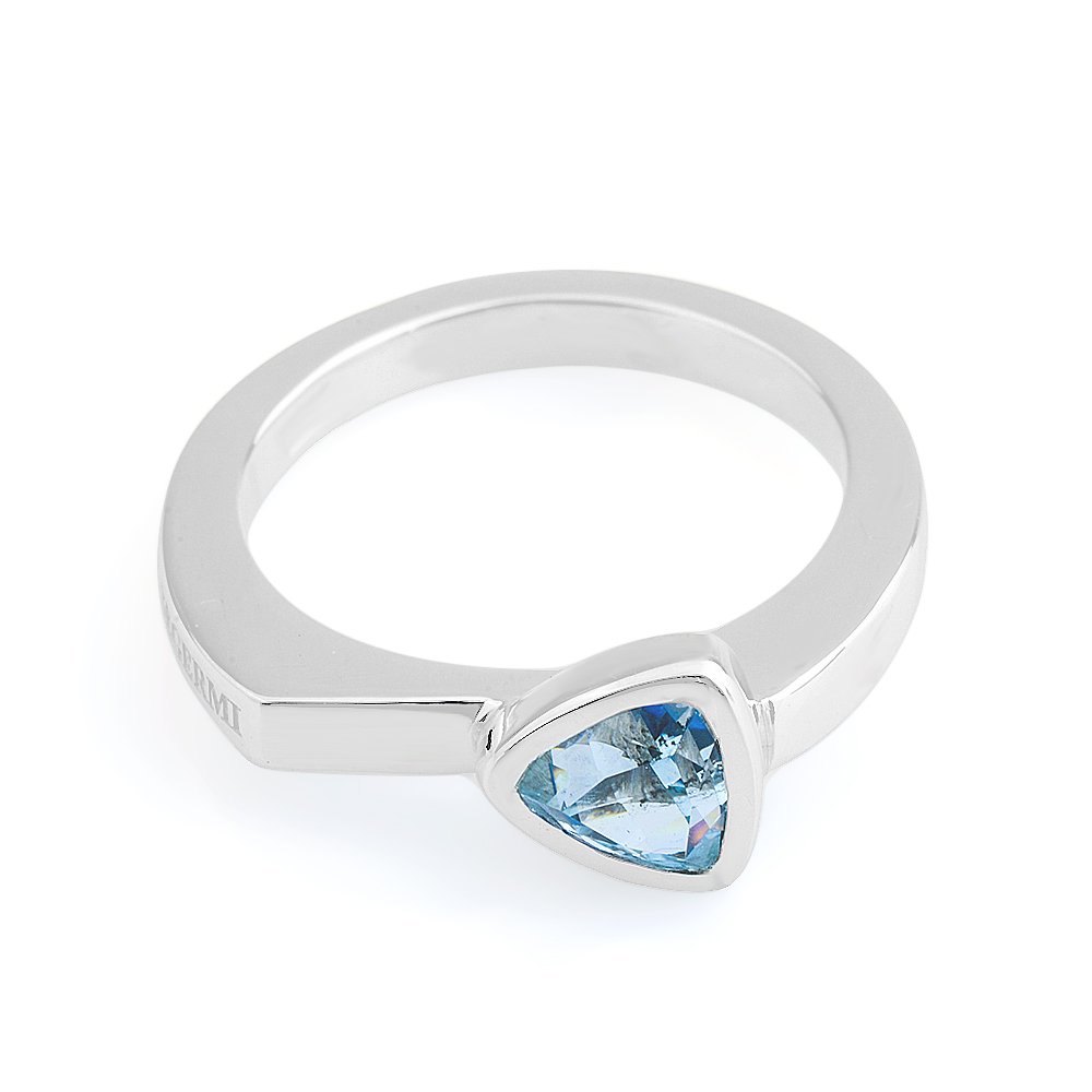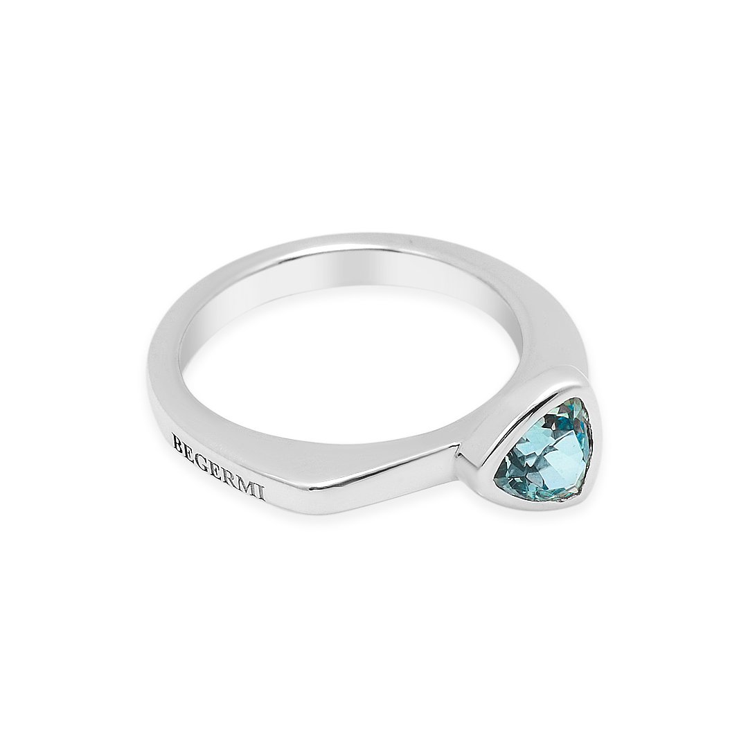 This silver aquamarine S Begermi ring is crafted in 925 sterling silver and weighs 4.57 grams. Its band features smooth, sculpted lines and a high-polish finish that reflects light softly. The minimal shape keeps the focus on balance and ease. Additionally, the design sits low on the finger, making it ideal for everyday wear. Its gentle curves and understated shine create a quiet, confident presence.