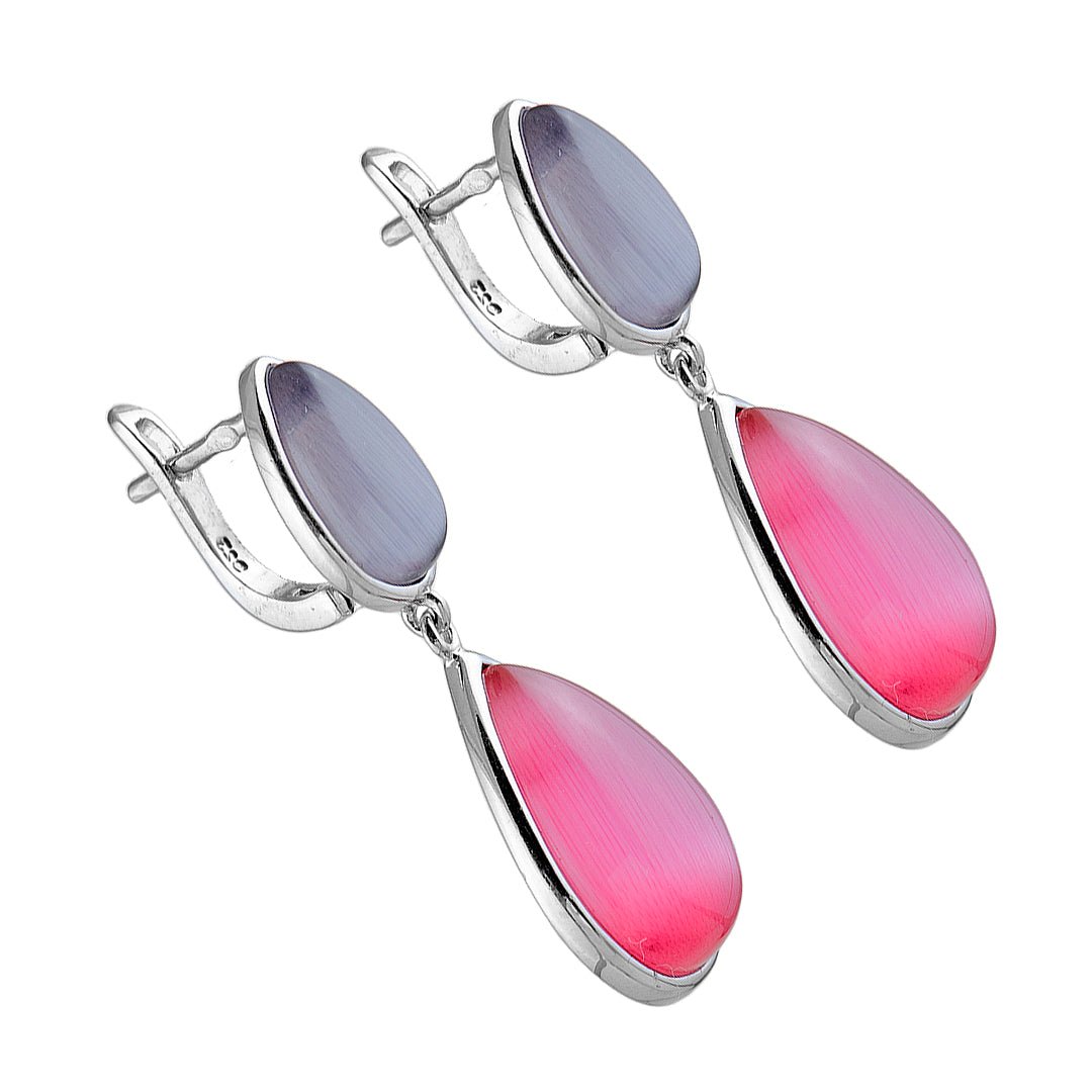 These silver cat’s eye earrings present a bold sculptural form that commands attention and complements refined style. Crafted from 925 sterling silver with a total weight of 10.47 grams, the design features smooth curves reflecting light from every angle. Moreover, the high-polish finish accentuates each contour and highlights the luminous stones at the heart of the piece. Consequently, this pair offers a striking statement for both daytime and evening looks.