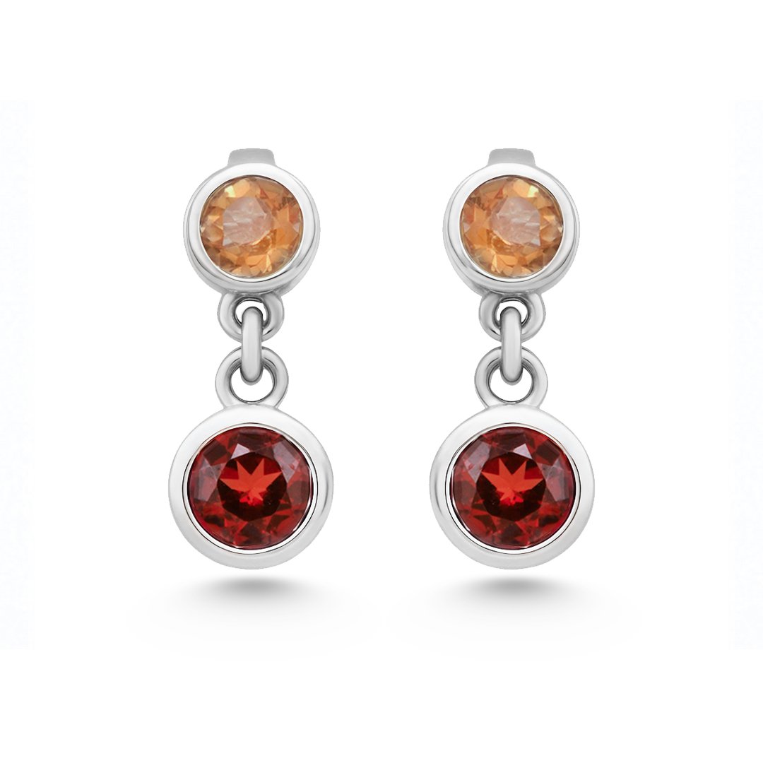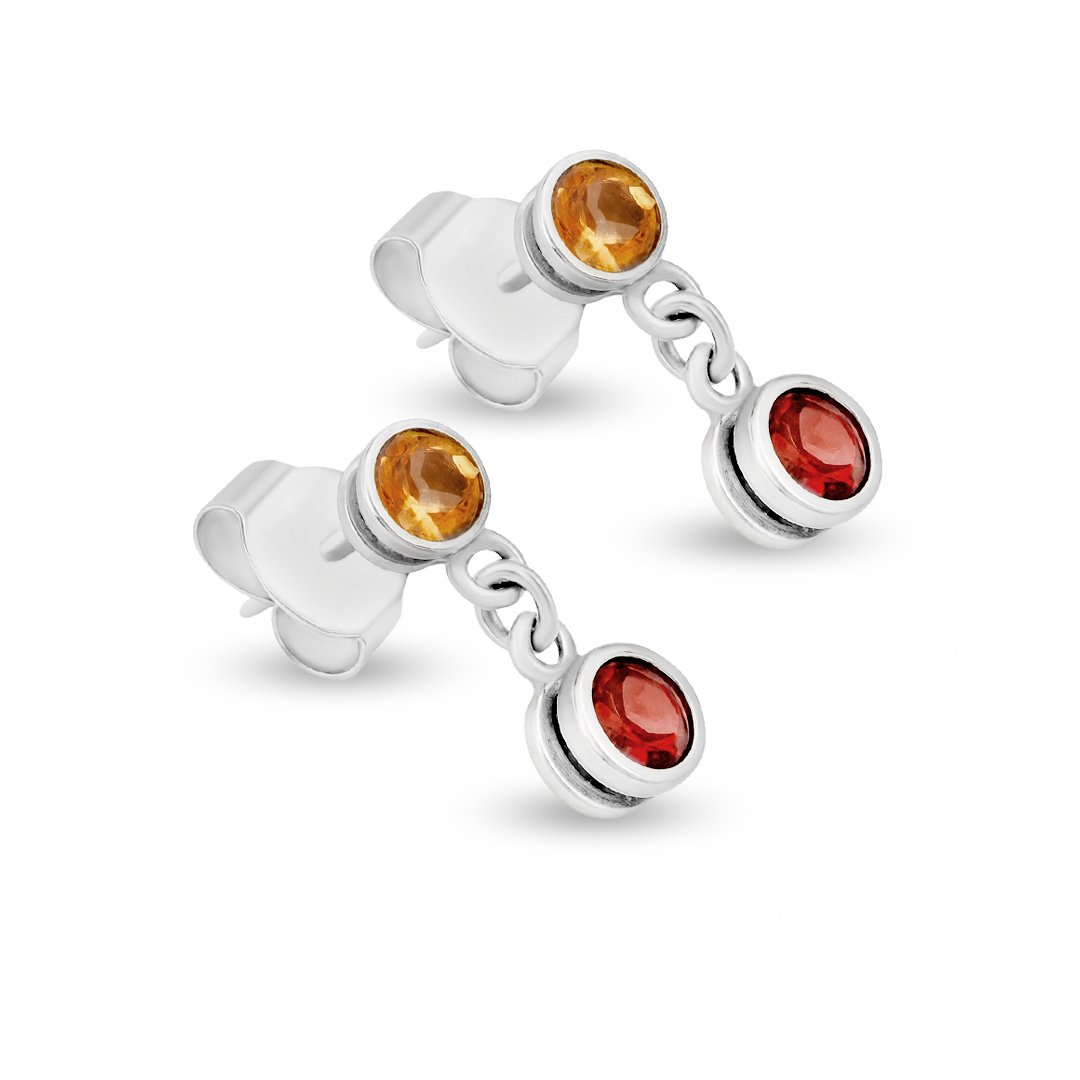 These silver citrine and garnet earrings express warmth through refined color harmony. Crafted in 925 sterling silver, the design highlights natural citrine and garnet stones. The citrine introduces a gentle golden glow, while the garnet adds depth and contrast. Together, they create a balanced visual rhythm that feels inviting. The polished silver setting frames each stone carefully. As a result, the earrings reflect light softly and evenly.