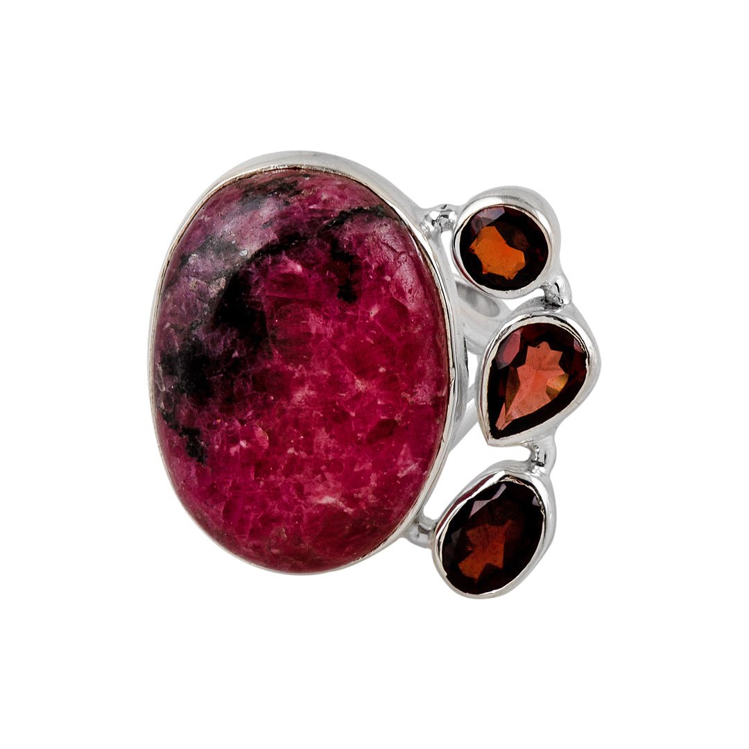 The design highlights structure and flow. The silver band is sculpted with soft curves that embrace the stone gracefully. Additionally, the garnet rests in a slightly elevated setting, giving it presence and brilliance. This thoughtful elevation allows light to enter the gem from every side, revealing rich inner tones. Moreover, the silver detailing remains subtle, ensuring that the focus stays on the garnet’s natural beauty. As a result, the piece feels timeless and thoughtfully composed.