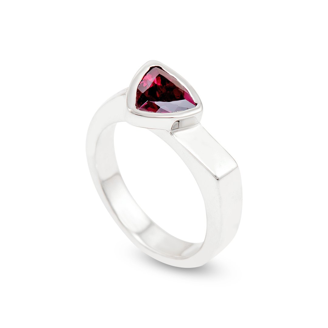 Rich garnet color framed in polished silver