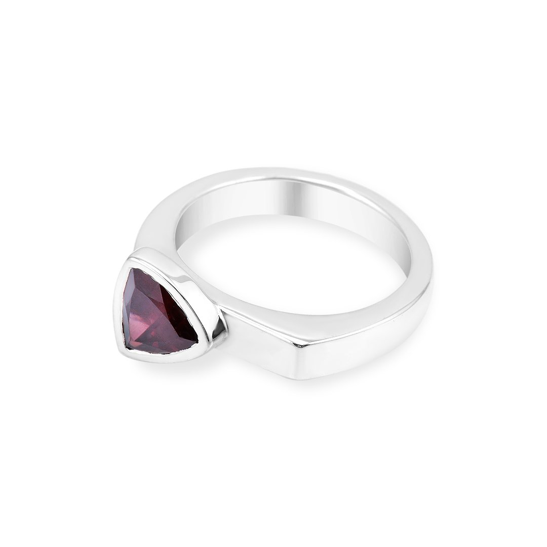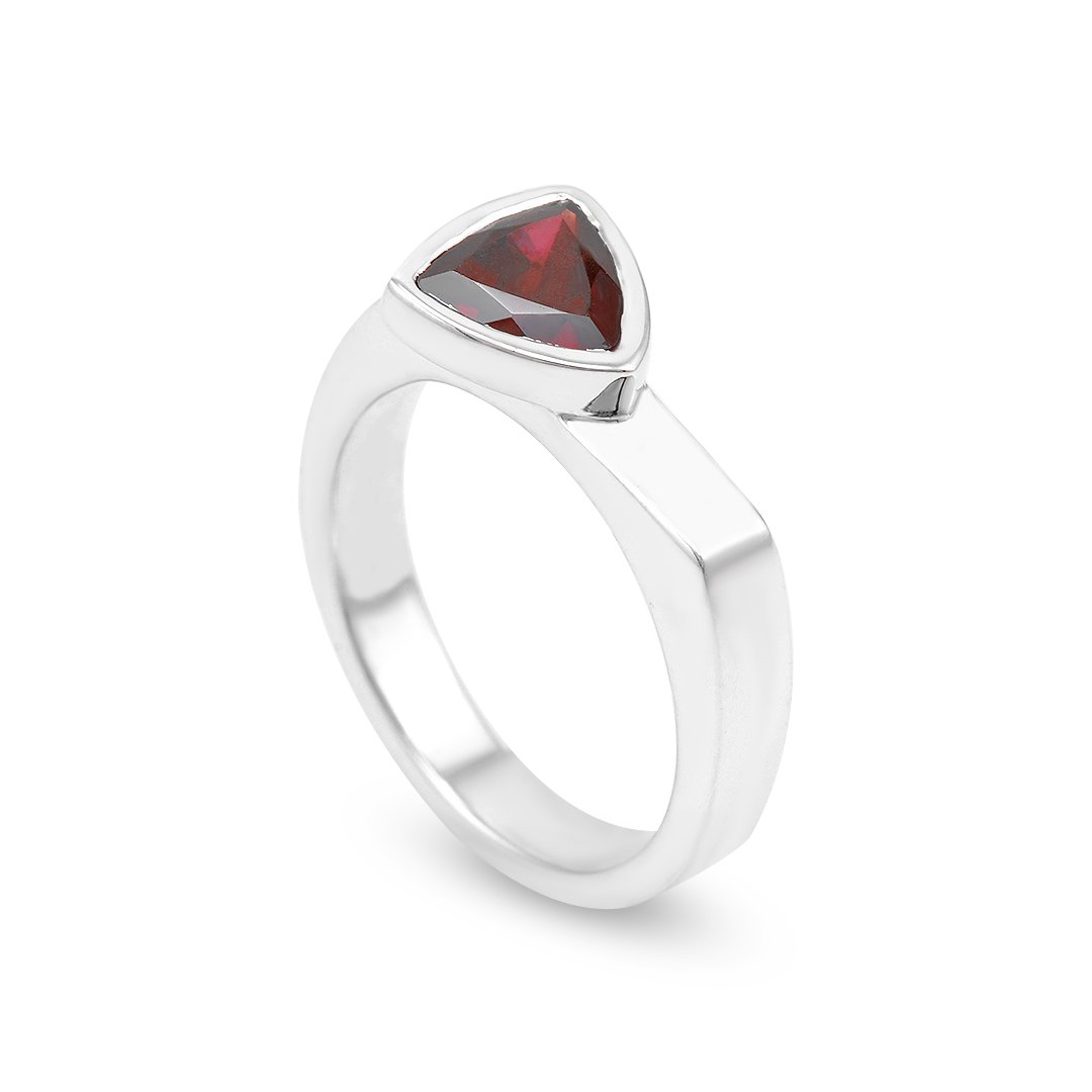 Deep garnet presence set in refined silver