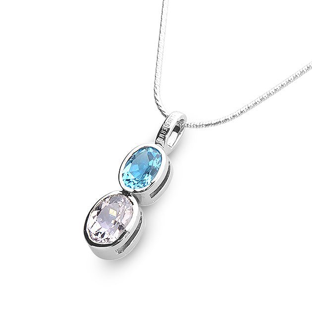 This pendant makes a thoughtful gift for moments both small and grand. The natural morganite symbolizes tenderness and gentle strength. Meanwhile, the blue topaz adds optimism and luminous contrast. Packaged in our branded box, it is ready to present and cherish. Moreover, its balanced colors suit many tastes and ages. It feels like wearable poetry always.