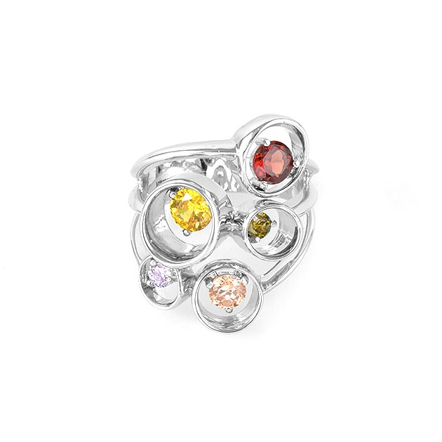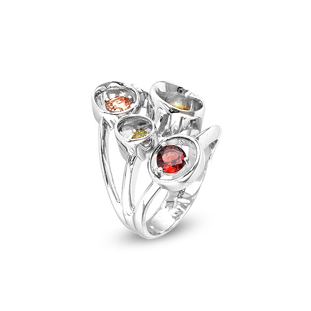 This silver ring with colorful stones brings joyful design and refined silver together in one playful piece. Weighing 7.52 grams and crafted from 925 sterling silver, it features multiple stones in various vibrant hues. The contrast between polished silver and vivid tones creates instant visual appeal. This is a silver ring with colorful stones that turns simplicity into a celebration of color and expression.