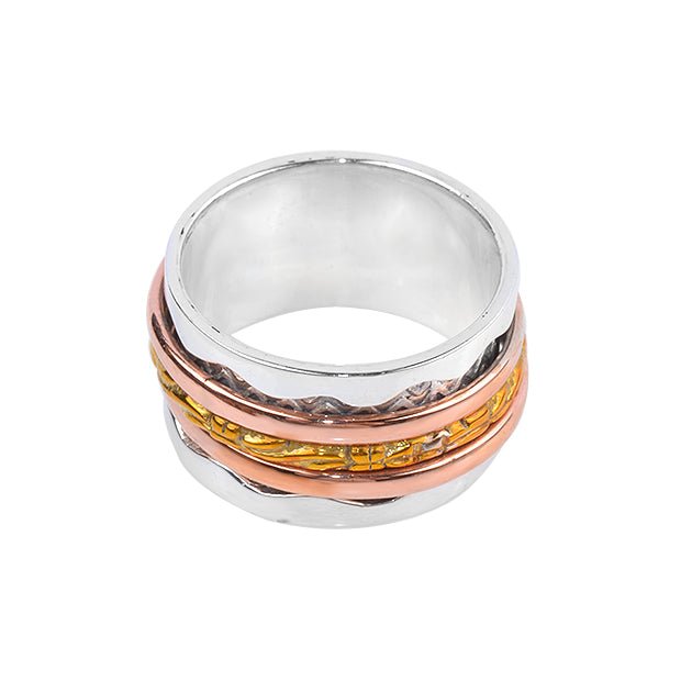 Despite its bold two‑tone look, this band remains comfortable for all-day wear. At 9.78 grams, it feels pleasantly substantial without weighing down the finger. The interior is smoothly contoured to ensure easy sliding and secure fit. In addition, the slightly rounded edges prevent any pinching or irritation, even during extended wear. Whether you’re typing at work or enjoying an evening out, this band stays in place with confidence and ease. It offers both style and practicality.