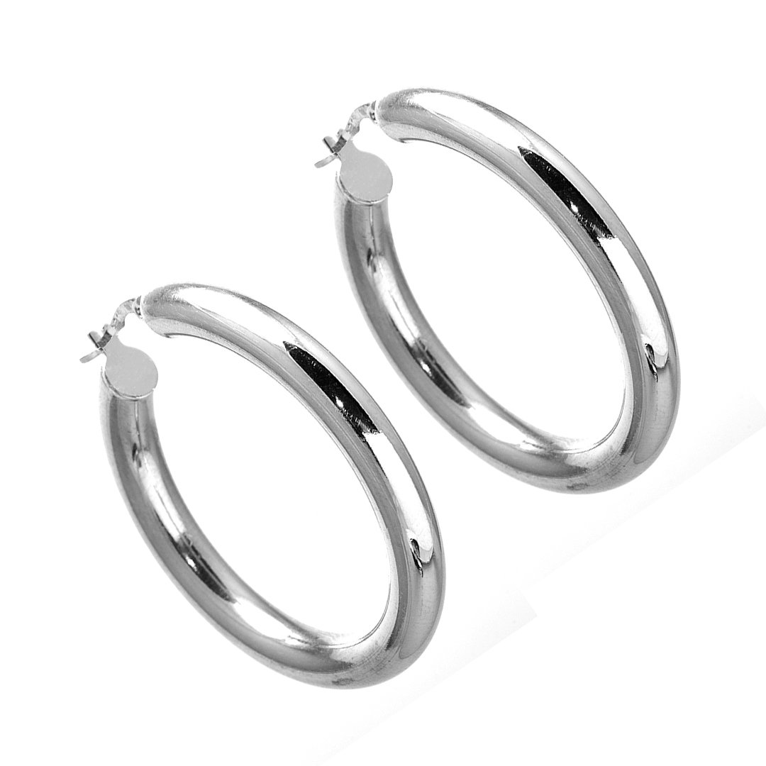 These sleek silver hoop earrings strike a perfect balance between bold presence and everyday ease. Crafted from 925 sterling silver, they weigh 8.73 grams. Moreover, their polished surface catches the light with gentle radiance. The medium-wide profile offers just enough shine without overwhelming the face. Additionally, the classic hoop shape suits every style, from casual denim to evening attire. Consequently, these sleek silver hoop earrings become a go‑to accessory that elevates any look without effort.