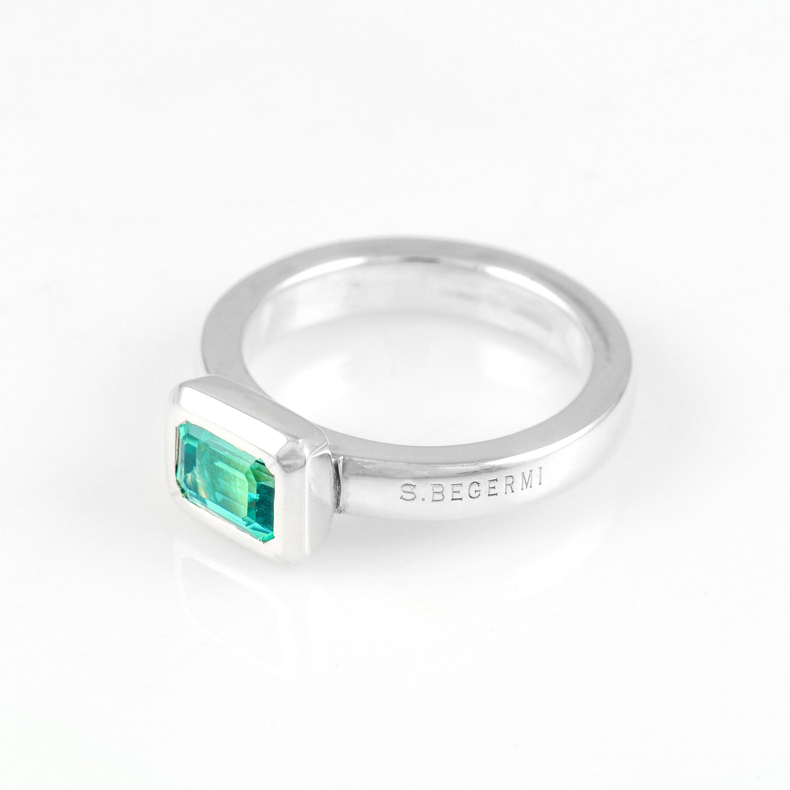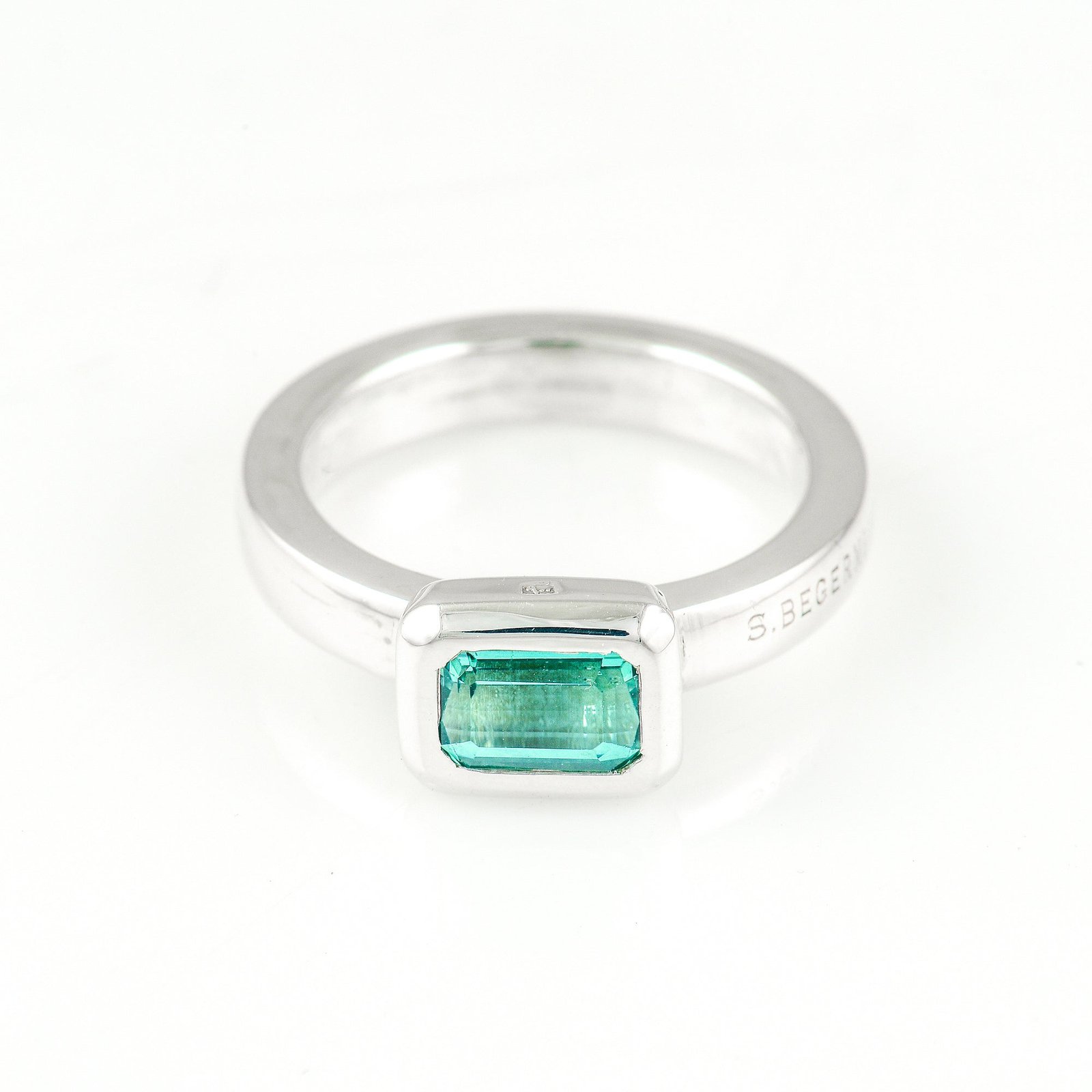 This S. Begermi design transitions effortlessly between casual outfits and evening looks. Its clean structure and rich gemstone color give it versatility. The 925 silver resists tarnishing and maintains its luster with simple care. Likewise, the natural tourmaline preserves its color and clarity with minimal upkeep. The sleek tourmaline ring reflects modern elegance—distinct, meaningful, and timeless in its simplicity.