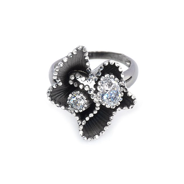 This small grey flower silver ring by Roberto Bravo is a poetic piece of sculpted elegance. Made from 925 sterling silver and weighing 5.73 grams, it features a delicately shaped flower with soft grey tones. The design captures nature’s grace in a minimal yet expressive form. As a small grey flower silver ring Roberto Bravo creation, it balances structure and subtlety with artistic finesse.