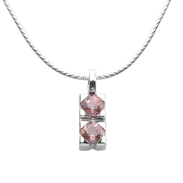 This tourmaline square pendant combines clean geometry with vibrant natural stones. Crafted from 925 sterling silver, the pendant weighs just 1.97 grams, yet offers sharp elegance and a modern edge. It features two square-cut natural tourmalines, totaling 1.02 carats, placed within a minimalist rectangular silver frame. The design balances simplicity and boldness, creating a structured yet elegant form. This tourmaline square pendant is a statement of refined geometry and subtle color.