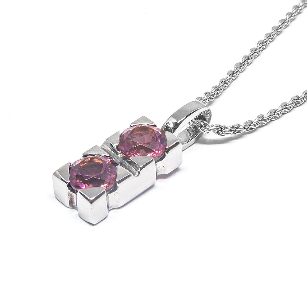 The rectangular silver body provides the perfect stage for the vivid tourmalines. Set side by side, the square cuts add symmetry and rhythm. Their natural hues bring depth to the clean lines of the silver. The bezels are precise, ensuring each stone is secure while allowing light to pass through with brilliance. Altogether, the tourmaline square pendant reflects a harmony of line, proportion, and stone.