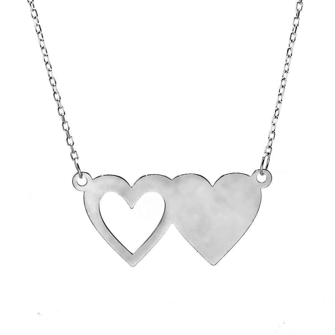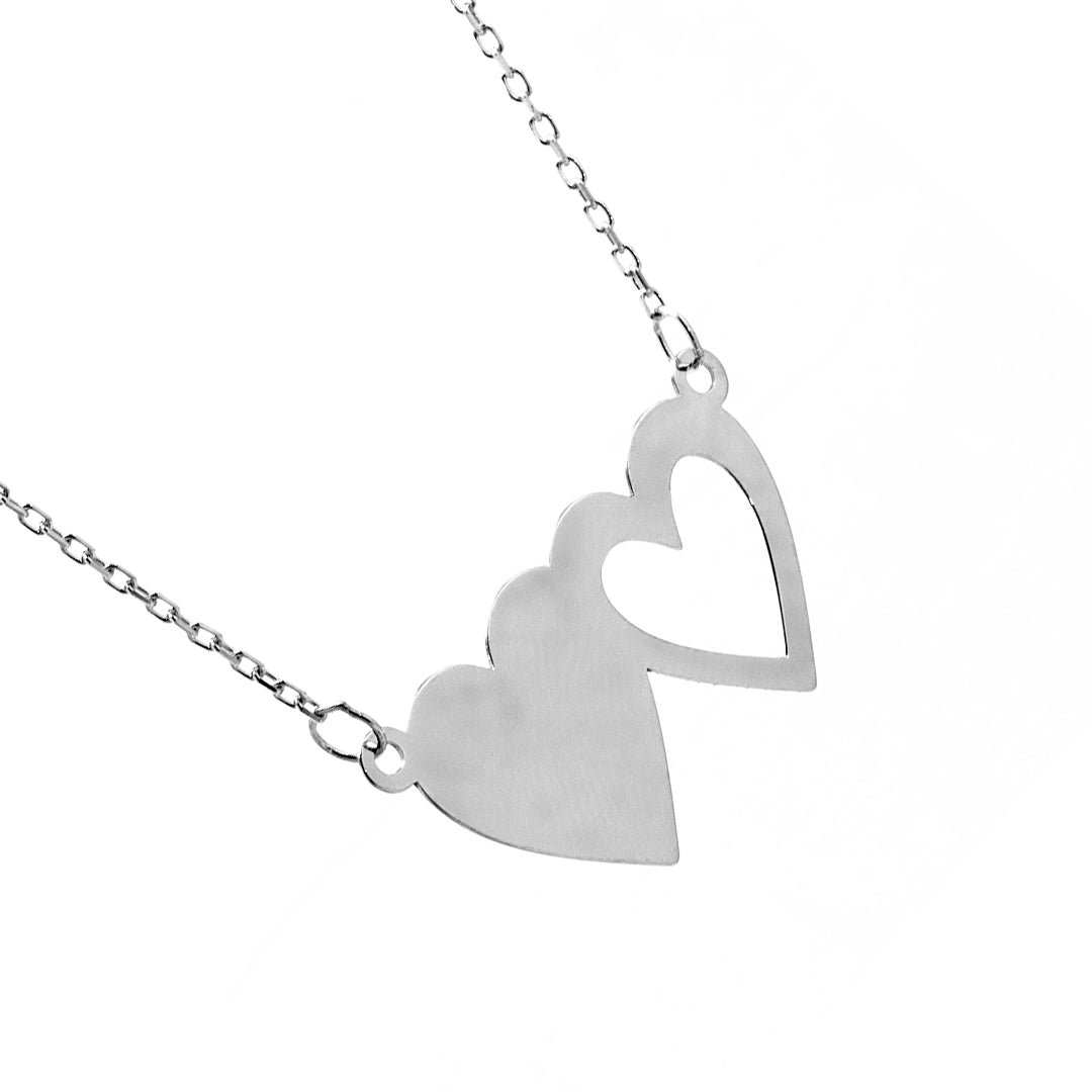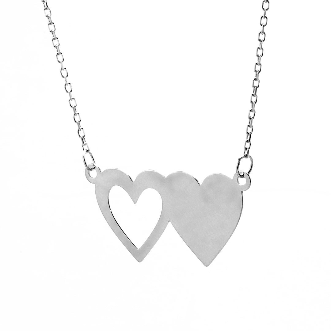 The twin hearts rest at the center of a delicate chain, positioned slightly offset for an organic, natural feel. Each heart curves fluidly into the next, representing harmony, affection, and unity. The polished silver catches light with subtle brilliance, allowing the piece to shine softly without overpowering. This design brings a poetic element to your daily wear, gentle yet rich in meaning.
