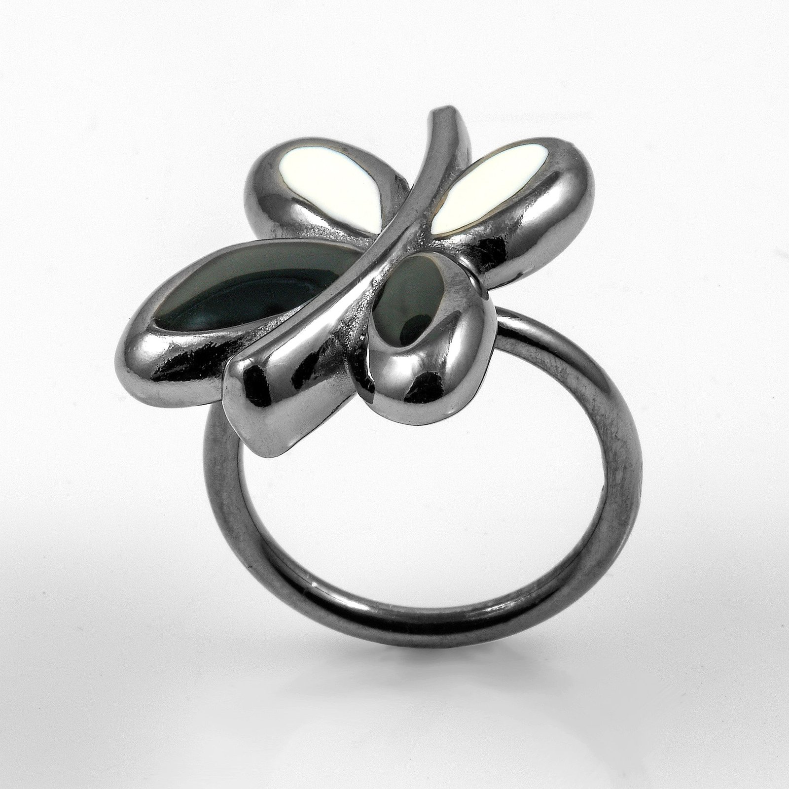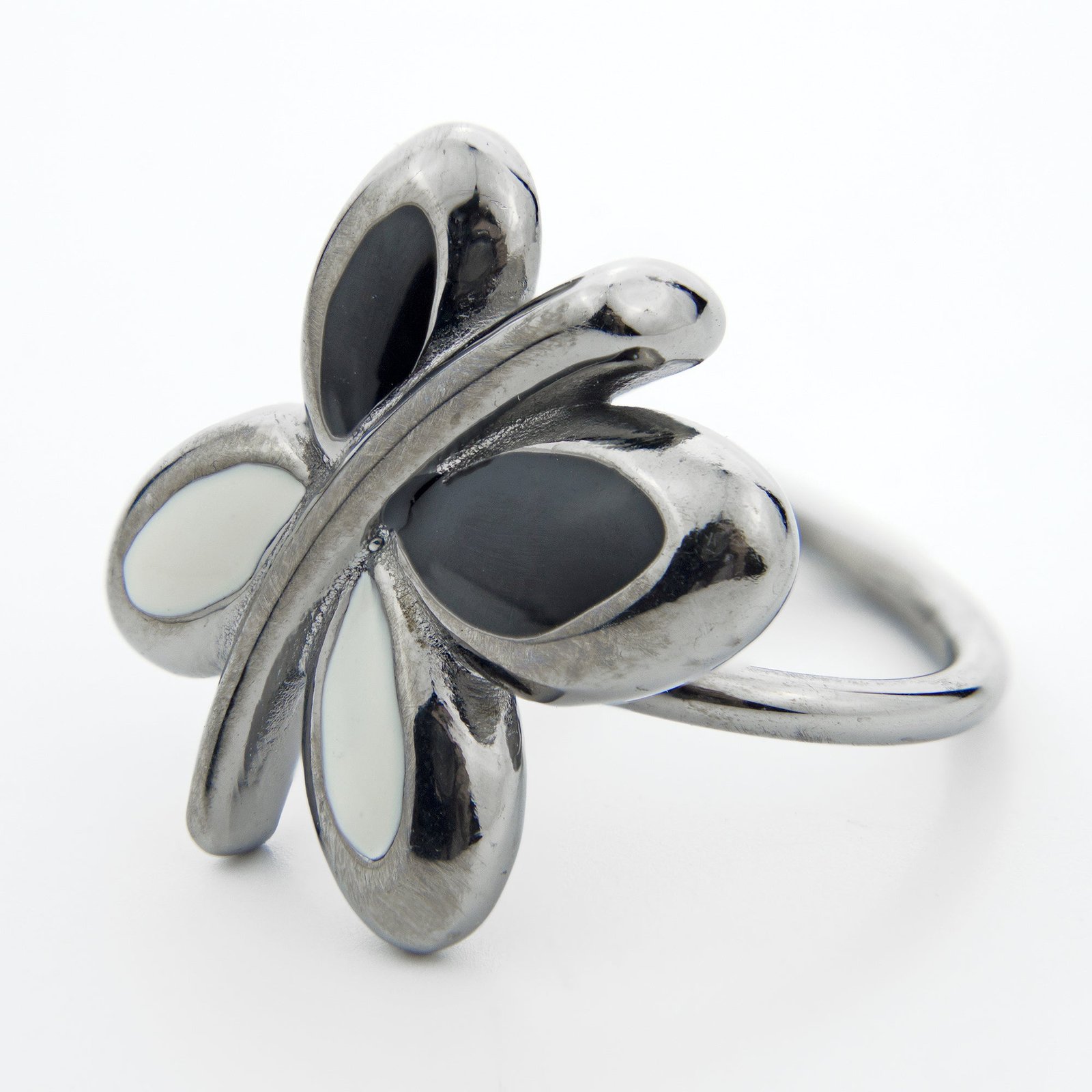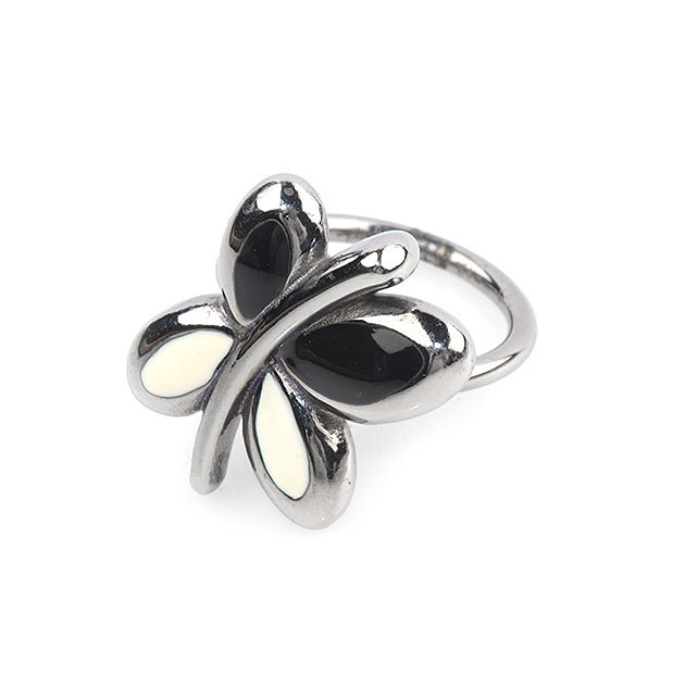 White and Black Butterfly Silver Ring