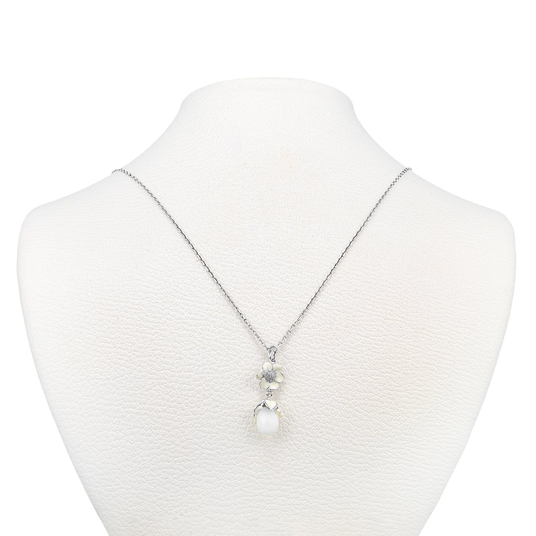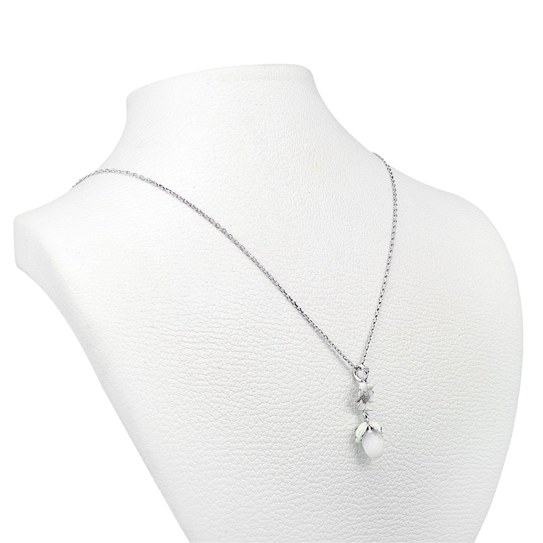 Weighing just under four grams, this necklace feels nearly weightless on the skin. The sterling silver frame retains its high polish with minimal maintenance. Moreover, the ergonomic bail and smooth chain allow the pendant to rest naturally at the collarbone. You can stack it with other necklaces or let it stand alone as a refined focal point. Additionally, the secure clasp ensures confident wear through busy days and evening events. The white flower drop necklace delivers comfort and style from dawn until dusk.